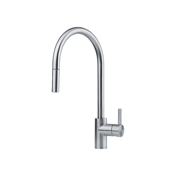 The Franke Eos Neo Kitchen Tap, a premium J-shaped pull-out nozzle kitchen tap crafted for flexible use, enduring quality, and minimalist style.